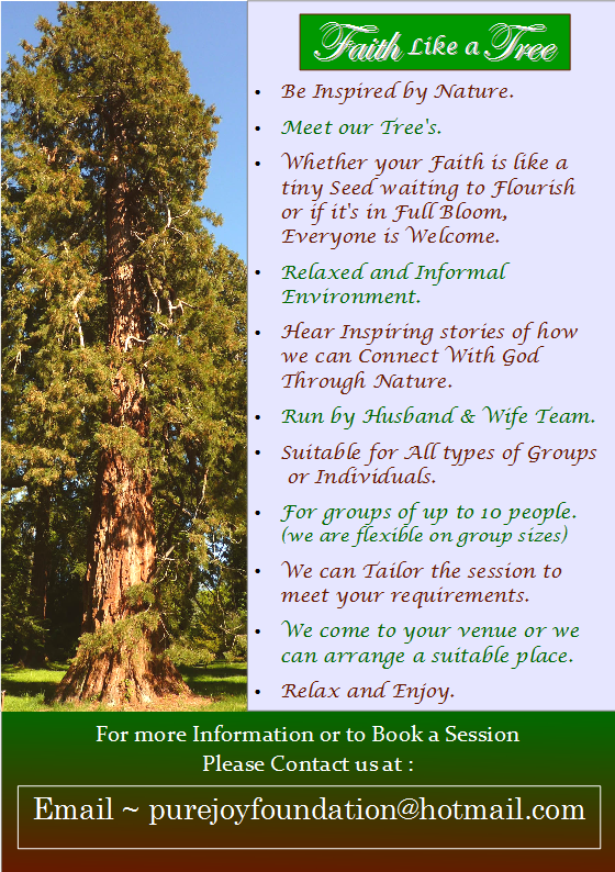 When we have set up Pure Joy Retreat we will Re-Start our ‘Faith Like a Tree’ sessions.